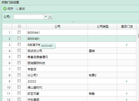 4、点击关联门店【设置】按钮,勾选该规则适用门店,点击【保存】按钮进行保存
